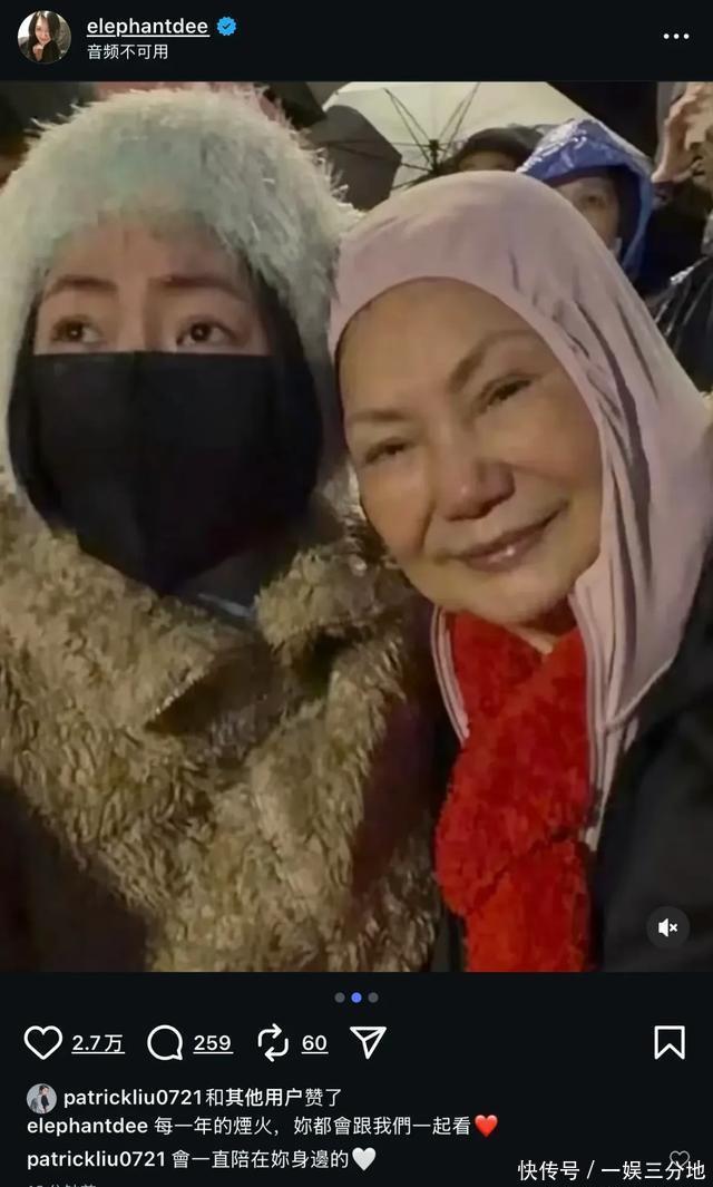 S妈把头靠向女儿小S,小S看向烟火的眼里含着泪,似乎下一秒就要哭出来。 相比起来,S妈似乎心情不错,戴着大红色的围巾,穿着粉色连帽衣,眼睛直视镜头,嘴角带着微笑。 脸庞圆润有起色,说明老人家的状态逐渐在恢复。