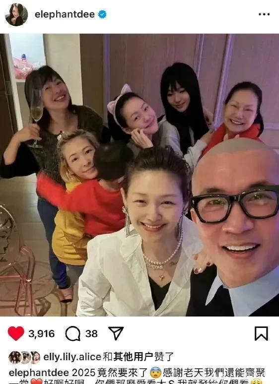 一年前,小S曾经发过跨年全家福,S妈和三个女儿,女婿具俊晔、好友Makiyo以及小S女儿,一家人整整齐齐。 那一天的大S戴上了全套的珠宝首饰,做了发型和美甲,当时的热搜都在夸她爱对了人,状态回春。